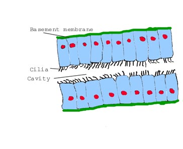 Anything in the vicinity of the ovary is sucked into the tube and from there to the womb. This kind of mucous membrane is called a ciliar epithelium.