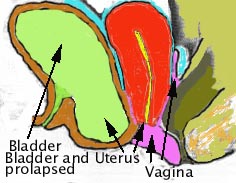 as the severely prolapsed uterus (womb) pulls the upper part of the