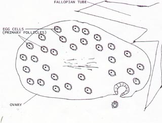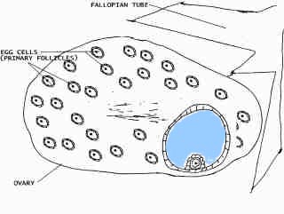 The following illustrated discussion will show how egg cells are released and will also be the basis for a discussion on ovarian cysts.