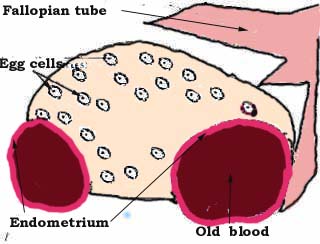 This illustrates a large simple cyst. It is a follicle that continued to enlarged and failed to rupture. (Compare with normal ovulation). It is also called a follicle cyst.